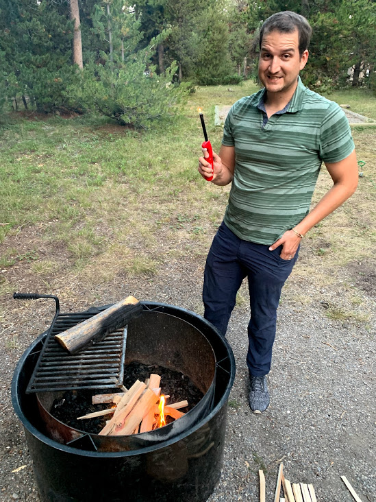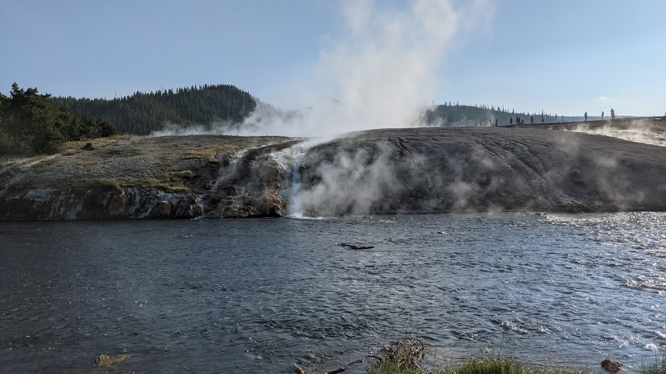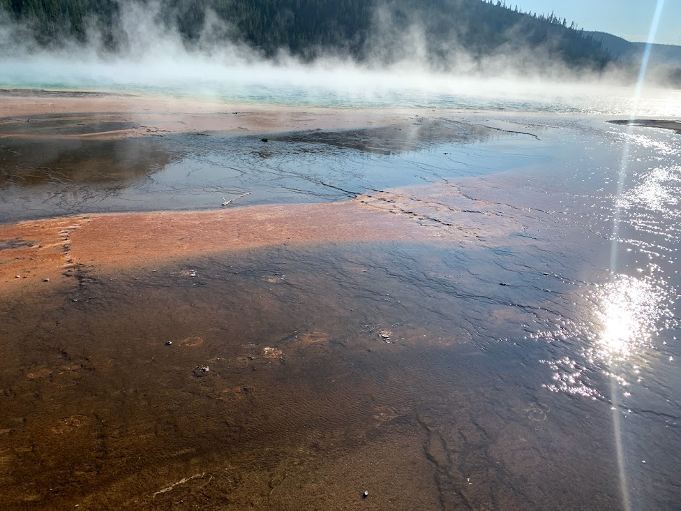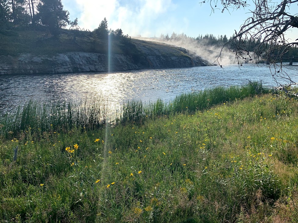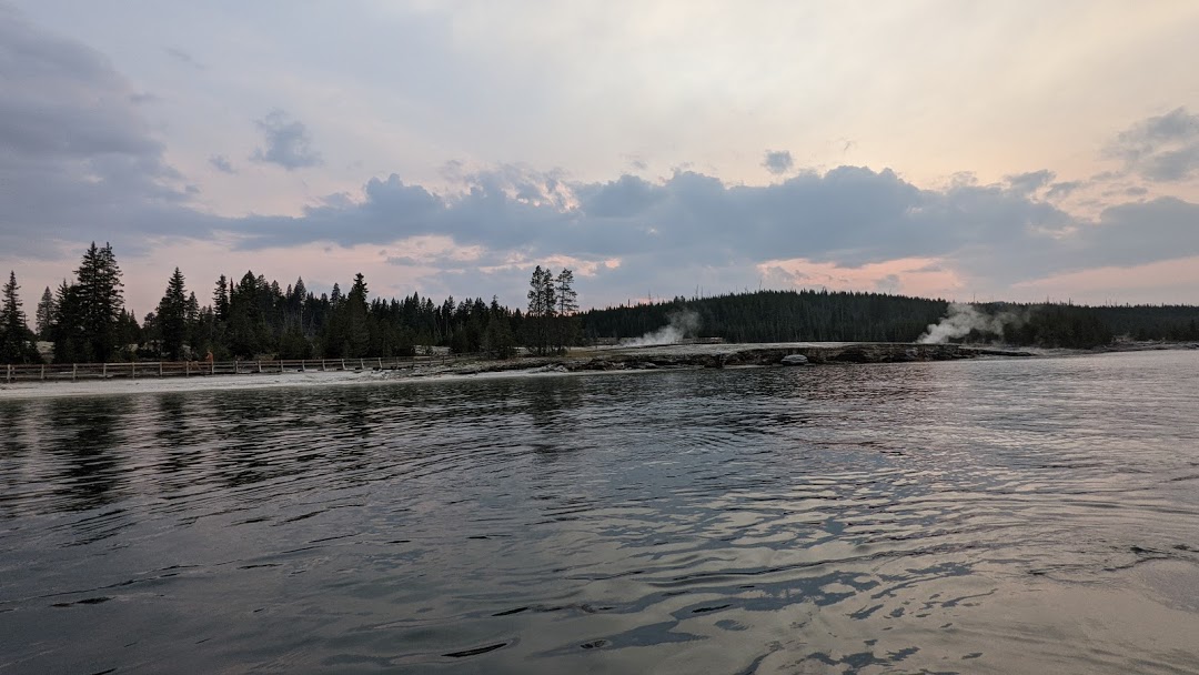 The Grand Prismatic Spring kept getting pushed back and back because all the blogs said that a rainy day is not a good day to see it due to the added steam clouding the colors. Similarly the morning and evening times were not ideal for the same reason. We ended up going in the evening, because I took a 3 hour Benadryl induced nap after we got back to camp for lunch. The light reflecting off of the water was a cool plus to going as the sun was getting low, but there was quite a bit of steam. Originally we had planned to see the spring from the ground viewpoint and then hike Fairy Falls to see it from the overlook up above. I was beat by the time we got there though, so the hike was out of the question. Oh well, something for next time.
