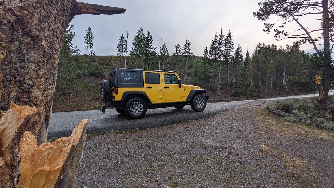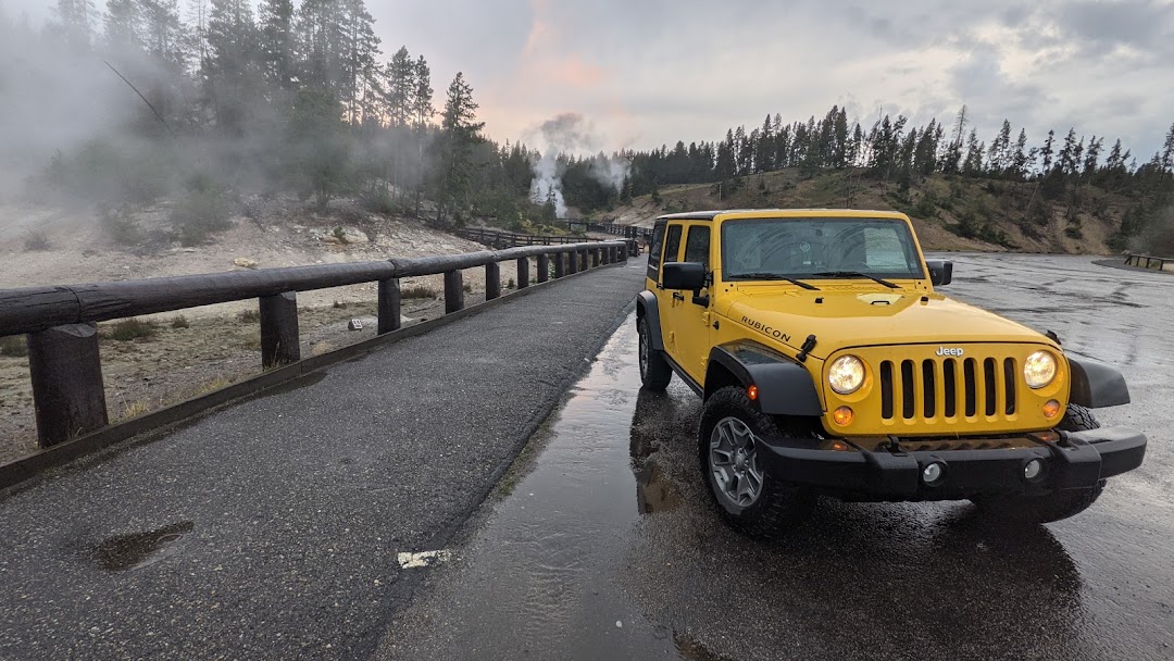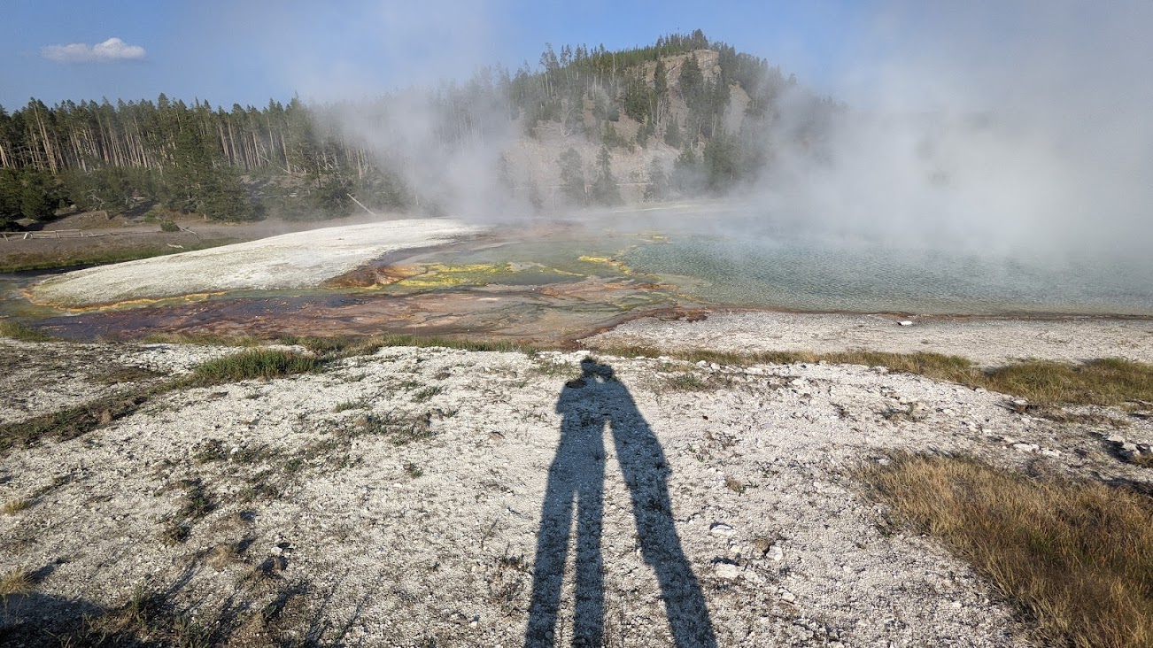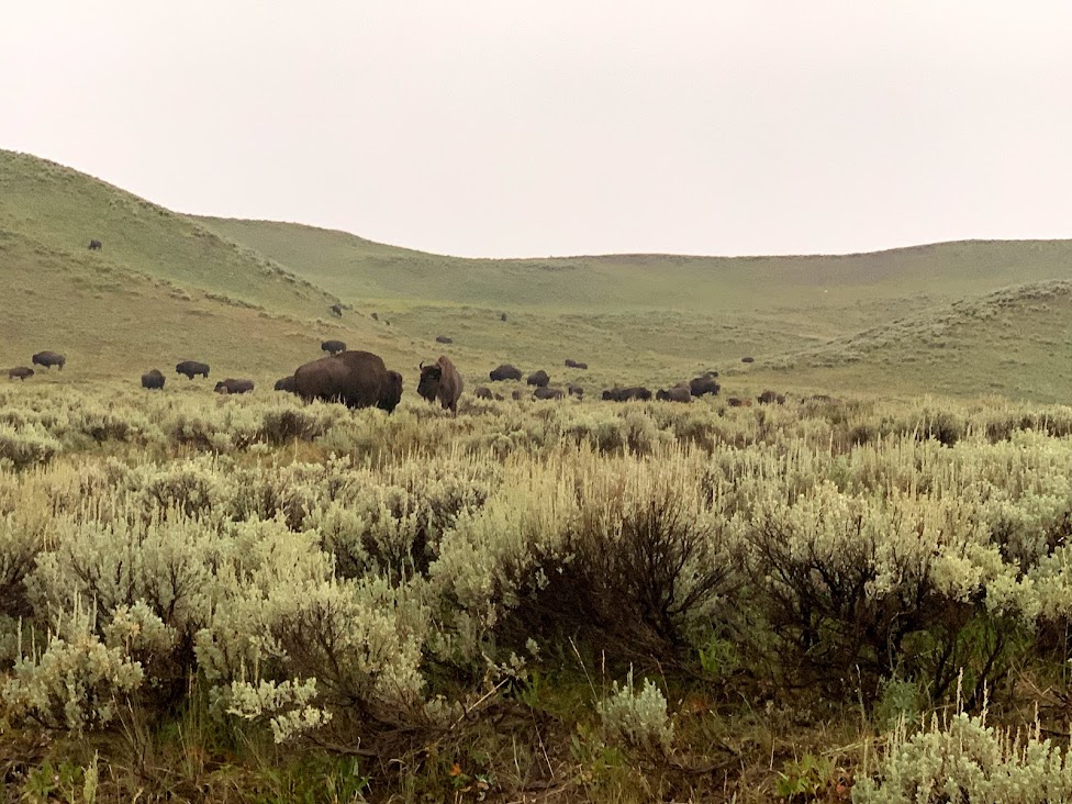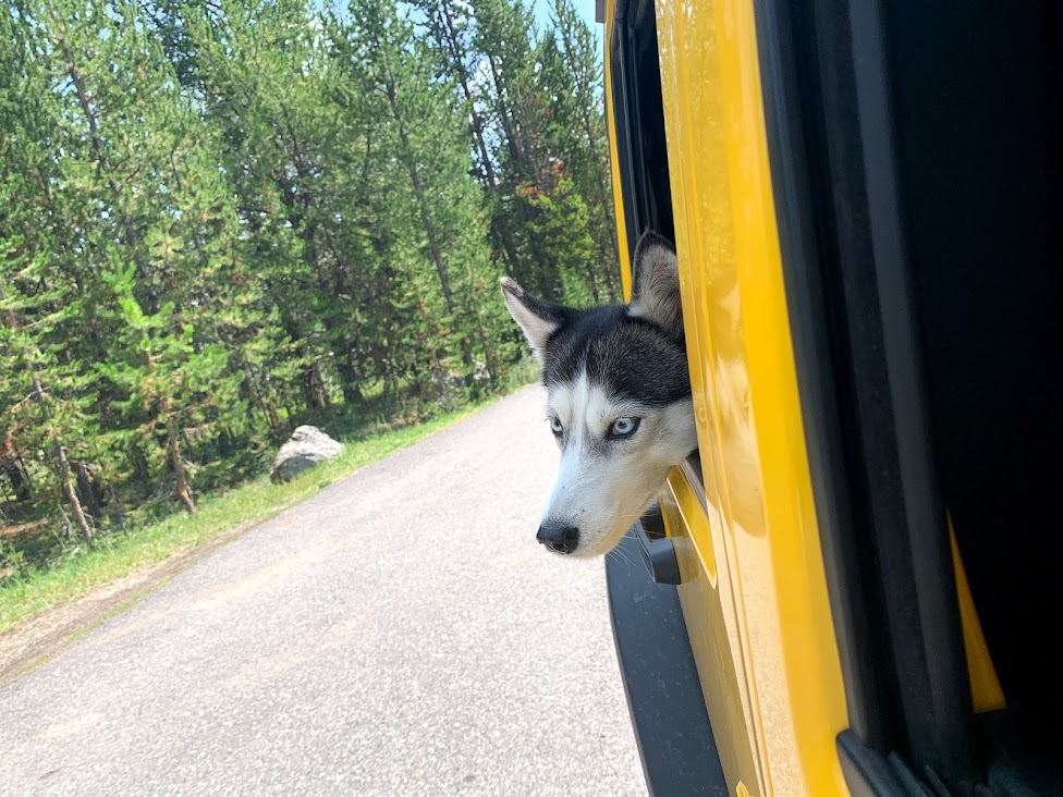 Hayden Valley is largely known as a wildlife viewing spot. While it was cool to see the valley and we got pretty close to some of the bison, it didn’t measure up to having one cross the road right in front of the Jeep. We were super lucky to have that happen to us early in the trip, but this would have been more impressive if we weren’t comparing it to that. We had the dogs in the car though, and Storm was so excited to see all of them. That made this outing worth it on its own!