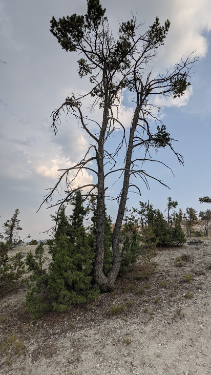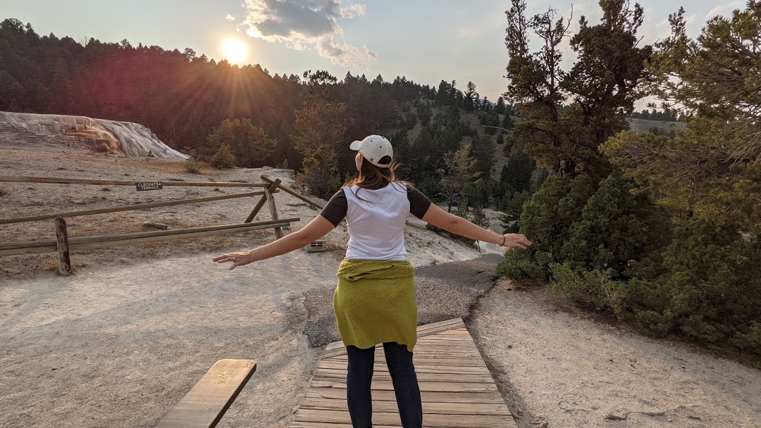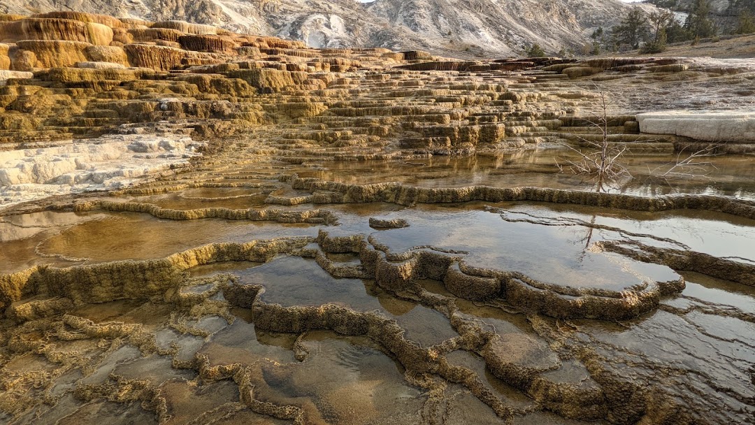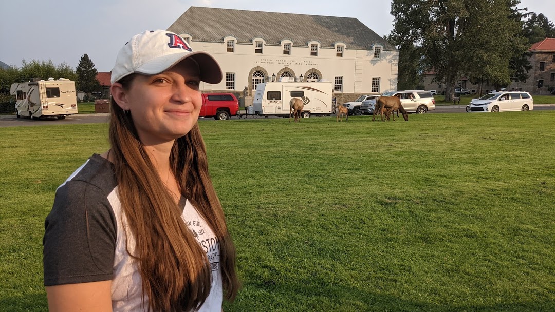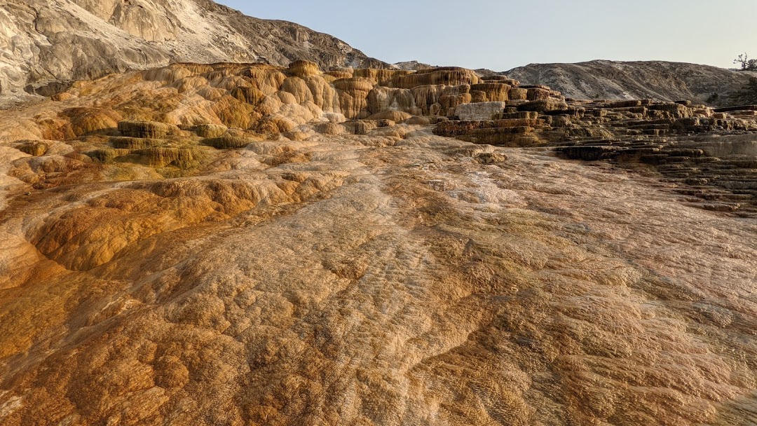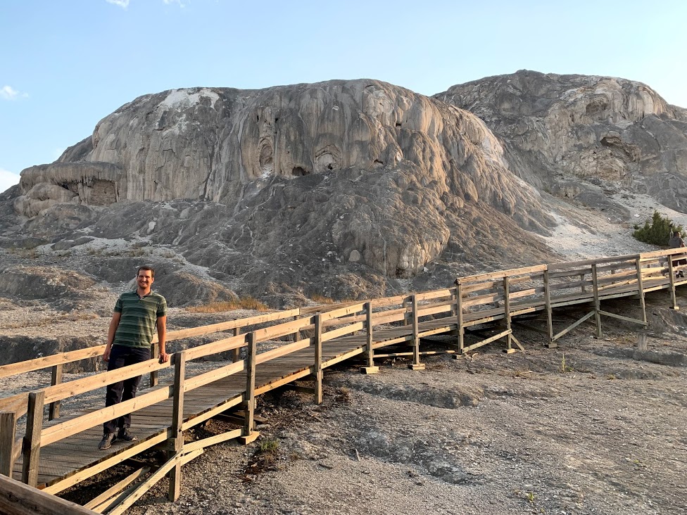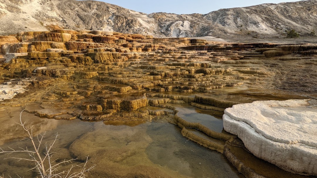 Mammoth Springs has a little town attached to it with a gas station, dining options, and I think even lodging. This little slice of civilization was about 15 minutes north of our campsite and had cell service so we were up in the area often. We managed to see some elk grazing in the development and they did not care about humans!