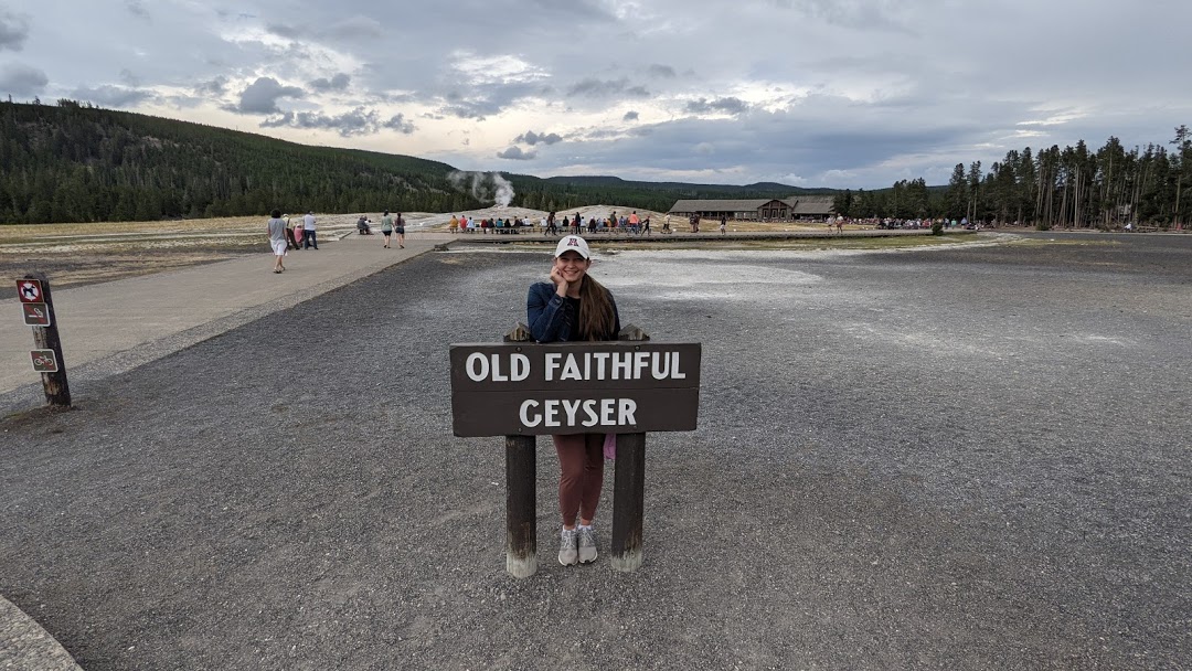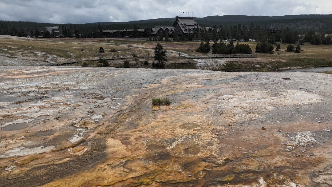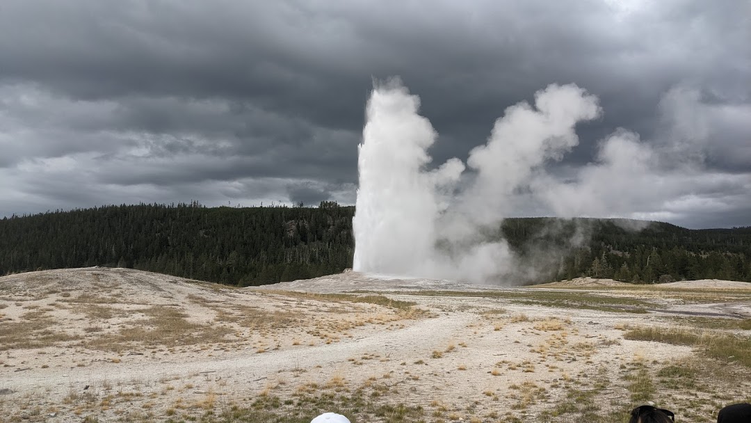 On the first day in Yellowstone we decided to go see Old Faithful. Come to find out later this was a very good decision; it was raining most of the day so the crowds were minimal. We got there a little before OF was scheduled to blow so we went and explored Old Faithful Inn. The Inn is super impressive with thick heavy wood everything. It’s amazing that they built it in 1903! We managed to get a spot on a bench about 15 minutes before the window for eruption opened with the reduced crowds.