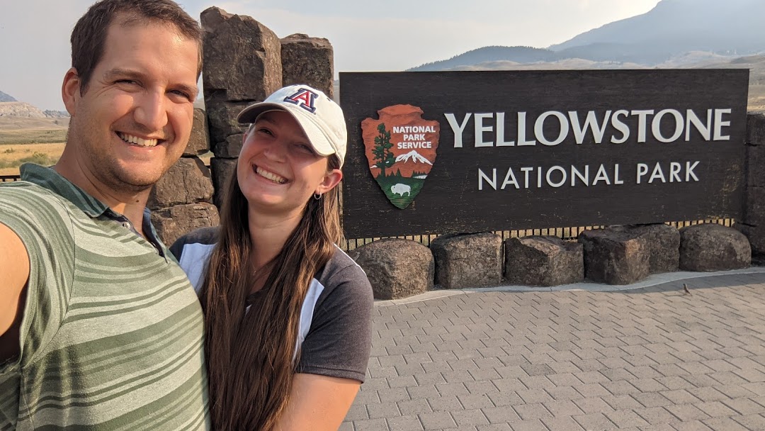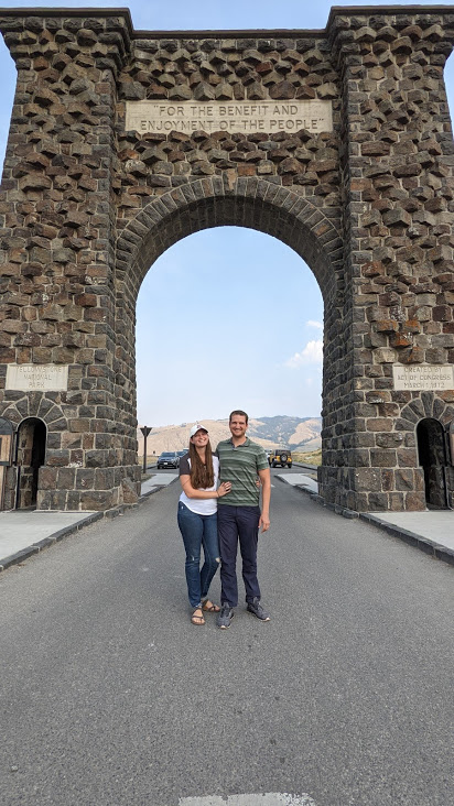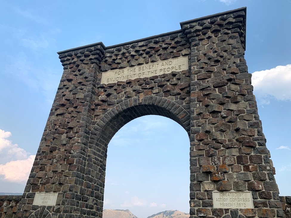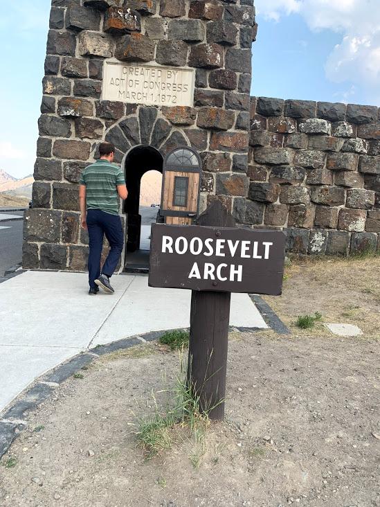 Yellowstone was the first established National Park in the U.S. and the Roosevelt Arch was the original entrance. It is located at the north entrance up in Montana. The arch’s cornerstone was laid by Teddy Roosevelt, how cool is that! We also stopped by the current north entrance sign, because we’re touristy.
