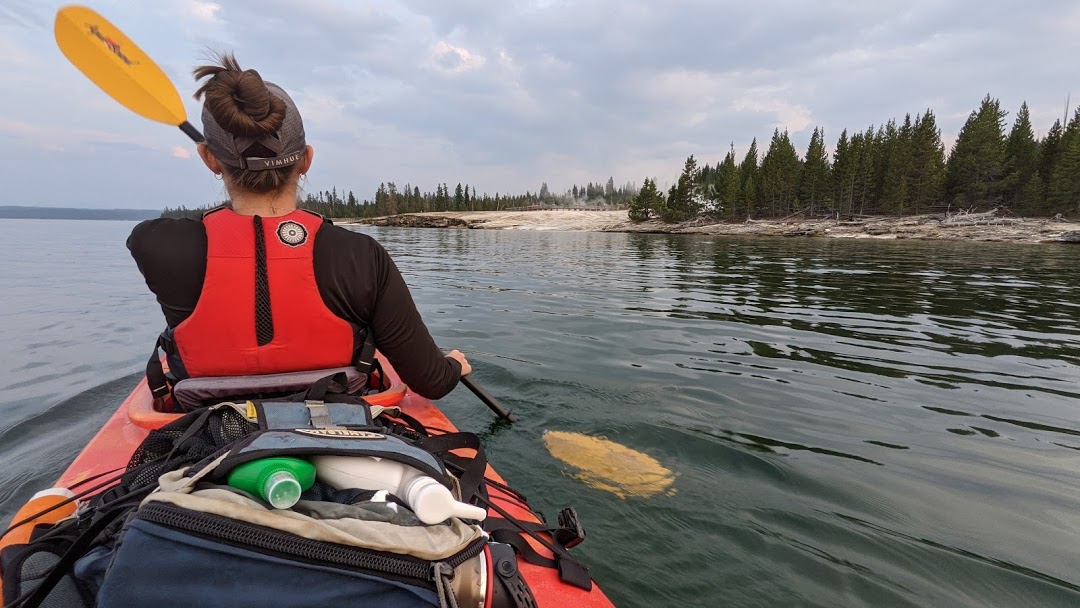 This was a blast, and might be my favorite thing we did in Yellowstone. We splurged on a guided sunset kayak tour of Yellowstone Lake’s West Thumb area. It was worth it, the guides were hilarious and super informative (shoutout to Max and Tom of Geyser Kayak for being awesome!) This was 6 miles round trip and we got to see some geysers that were only viewable from the lake, so that was cool.