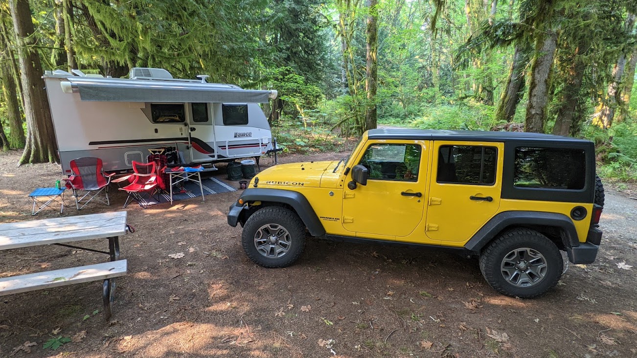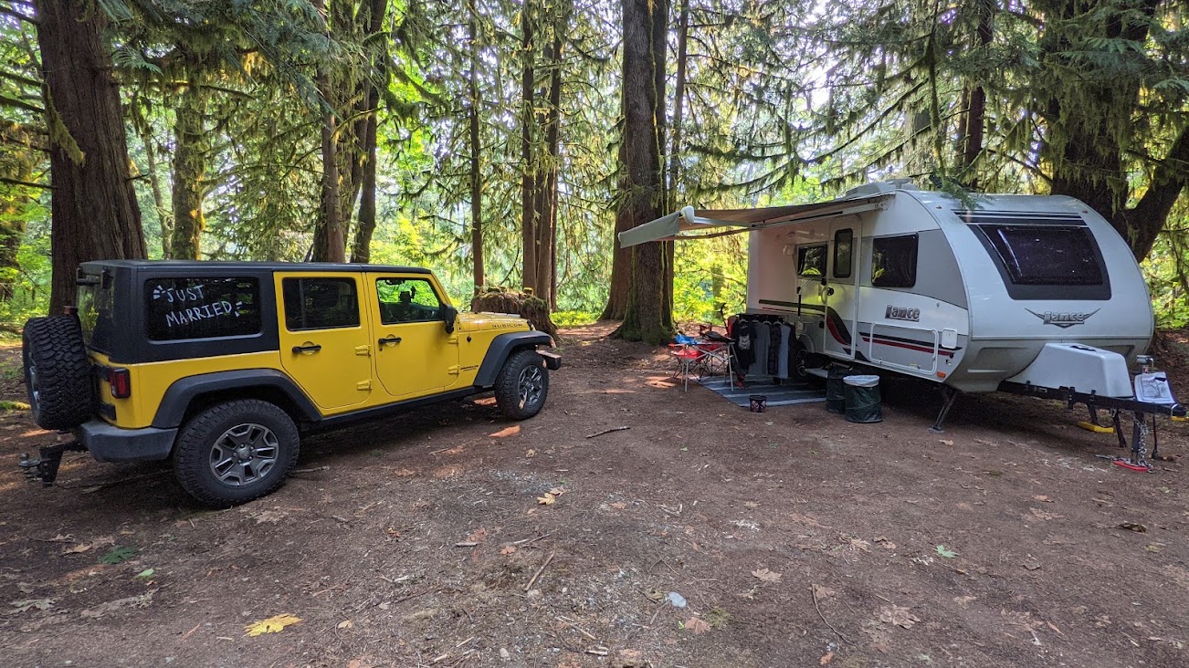 We stayed in an RV spot from Sunday – Friday but had to move to a tent spot for the weekend. I think I actually preferred the tent spot if I’m being honest. It felt like you were deep inside the forest, which we basically were. The lack of hookups and full tree coverage caused us some problems with power, but thats what generators are for!