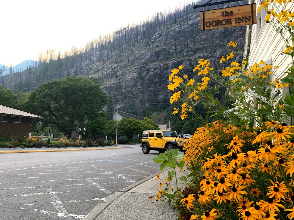 On our way up to the hike we were meet by a ranger blocking the road about 7 miles from the trailhead. Although the air was slightly better that day, the fire was making it unsafe to use the road. So the closest we got to hiking in the park was on our Maple Pass hike where we stepped across the boundary for a picture. Oh well, maybe next time.