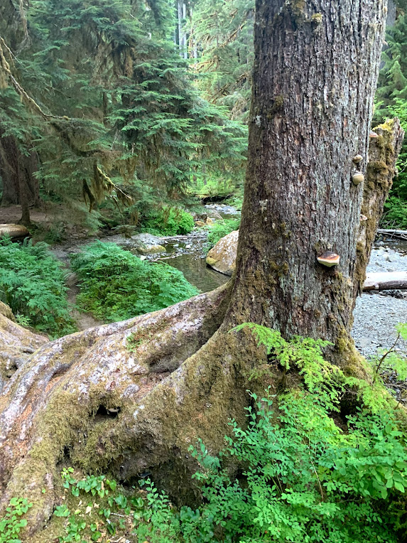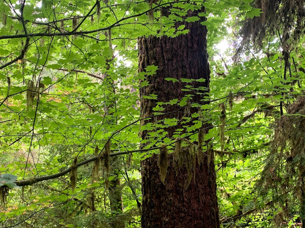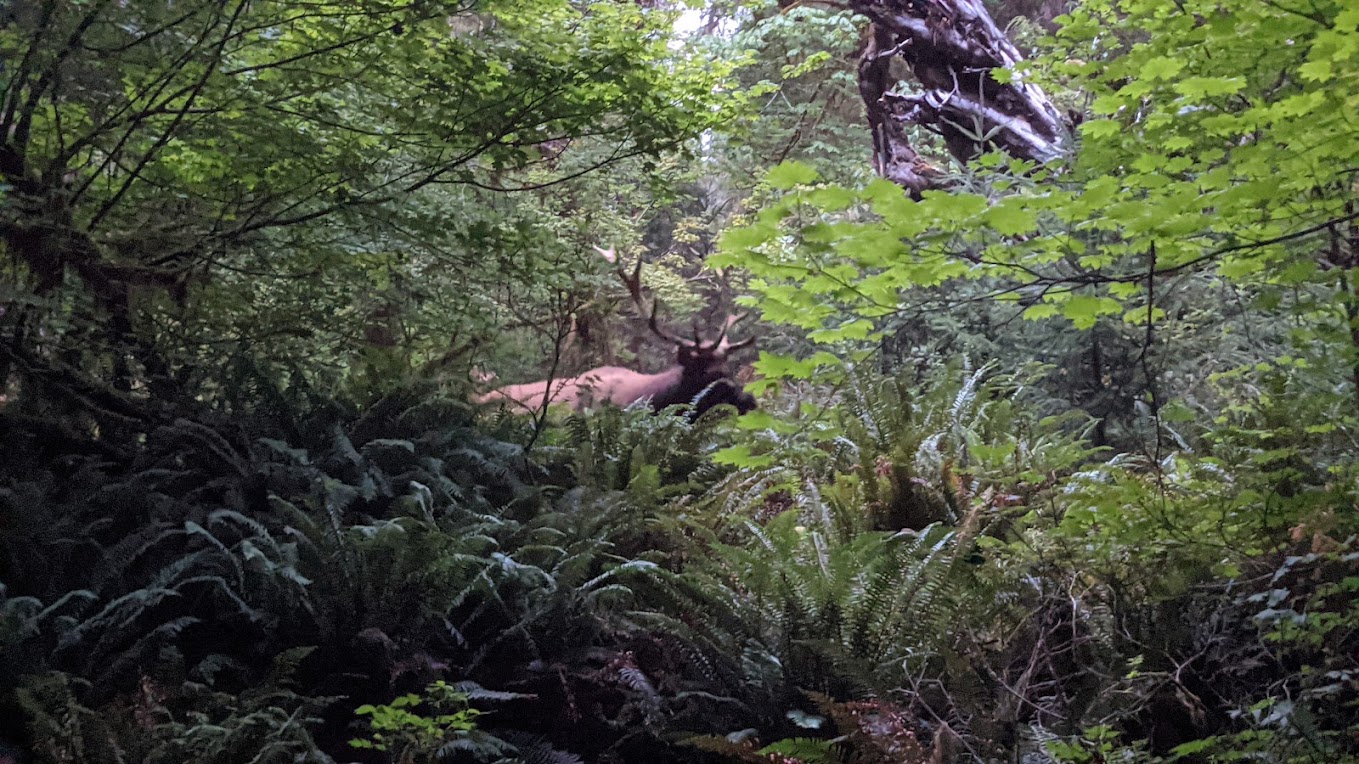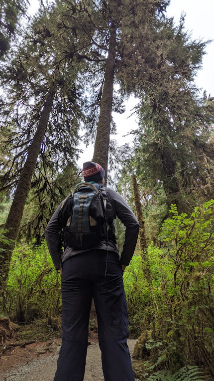 The second trail we trekked, started just steps from the Hall of Mosses exit. The Spruce Nature Trail was also short (1.4 miles) and had some amazing trees as well. But this trail stands out in my mind for a very specific reason. Here we met the rudest bull elk. We came around a corner and he was on the trail about 30 feet away. He then proceeded to hiss at us and lower his antlers before walking off the trail about 10 feet which was still not far enough for me to feel comfortable passing. We were only “trapped” for about 15 minutes but it felt like forever when a giant irritated bull elk is eyeing you as he noms on a nearby tree.