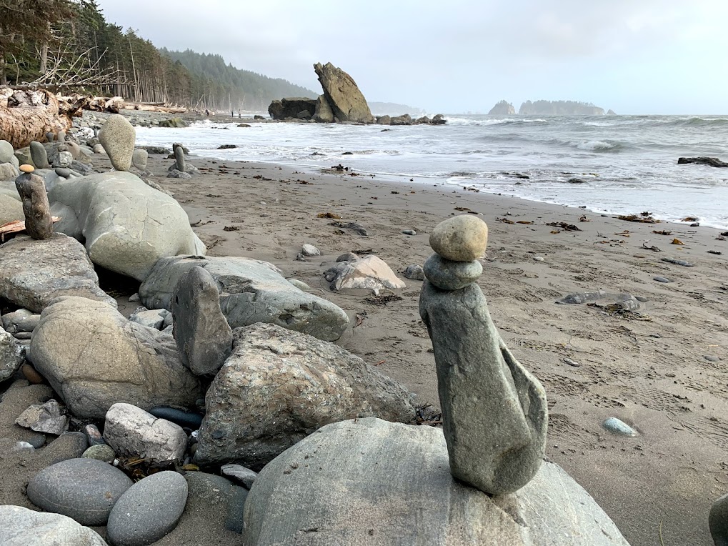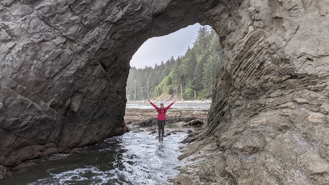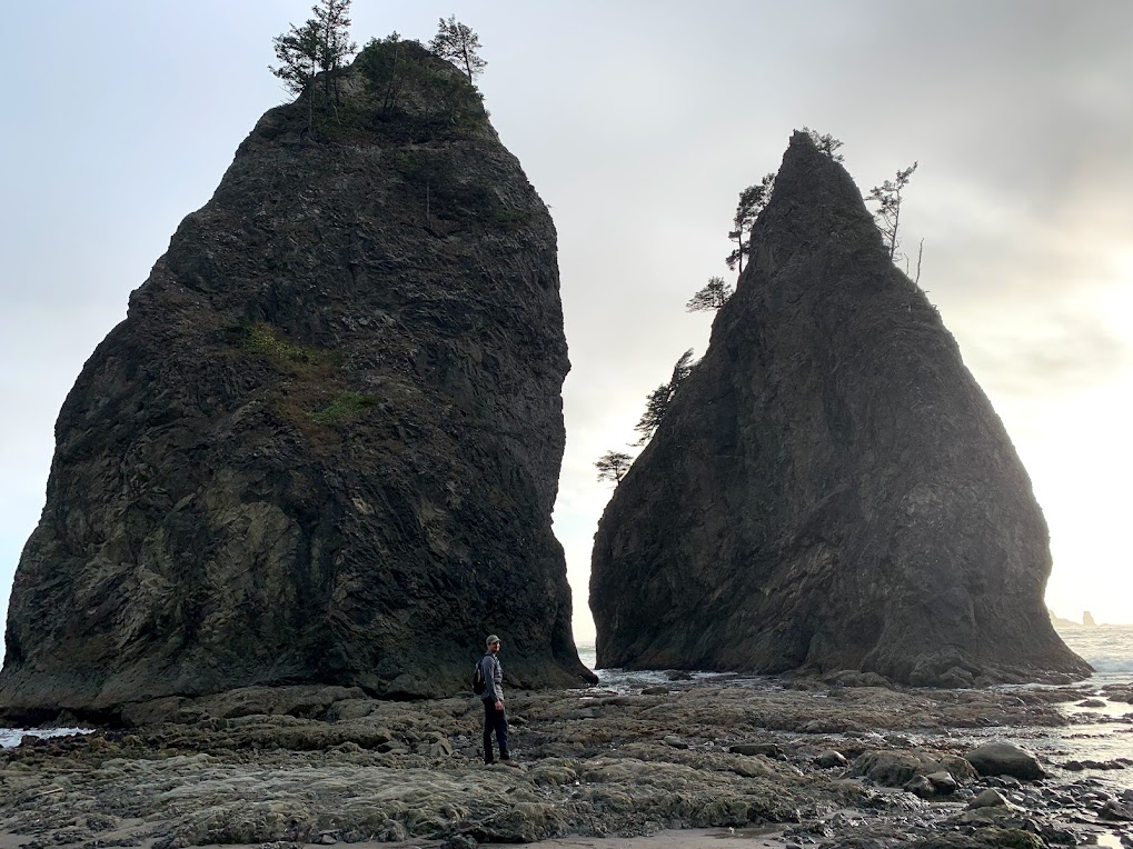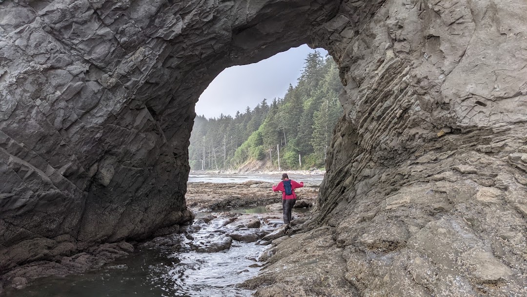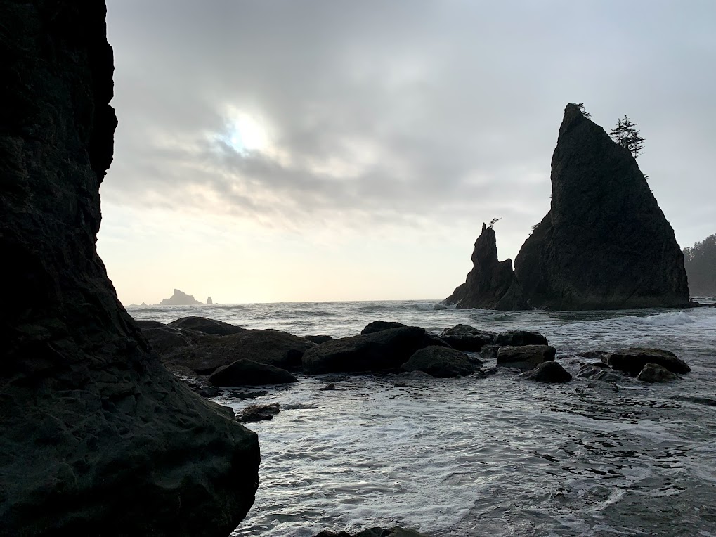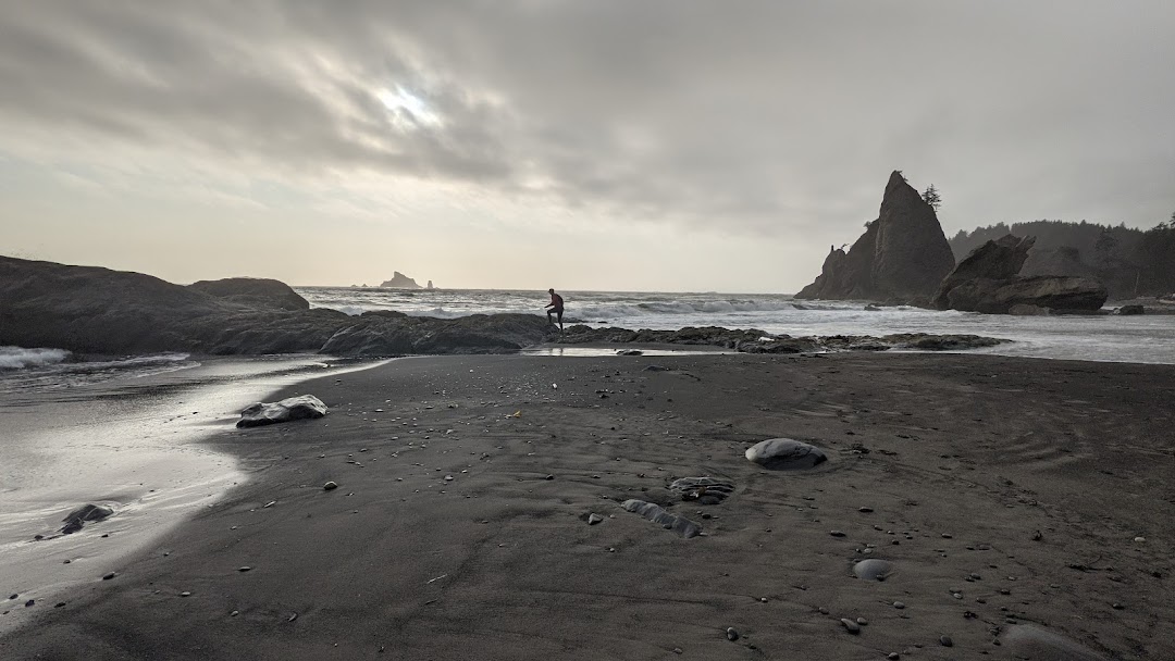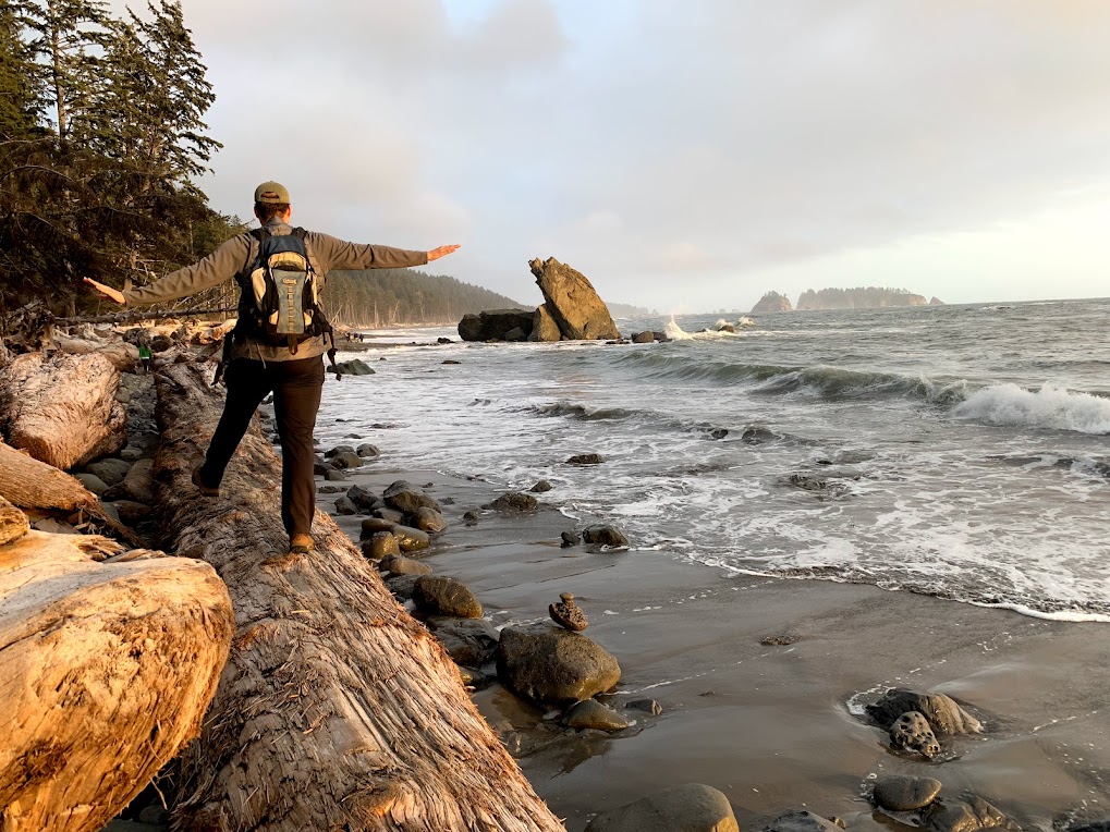 Next on the itinerary was a beach day! This was unlike any beach day I’d ever had before. We knew in mid August in Washington it wasn’t going to be like the sunny beaches of San Diego that we were used to. We dressed for the occasion and picked the Hole-in-the-Wall Trail from Rialto beach and if you are visiting Olympic this should be on your list. This was one of the best experiences. There is so much to explore and discover. We walked down the beach taking in the views of the fallen trees on the shore and the rock formations in the water. The hole in the wall was a blast to explore too. We crossed in front of the rocks chancing the waves on the way over, and went over the hill on land coming back. Both had spectacular views. The memory that will probably stay with me the longest though, is the sound of the waves retreating over the rocks all up and down the beach. The babbling is the most relaxing sound I’ve ever heard.