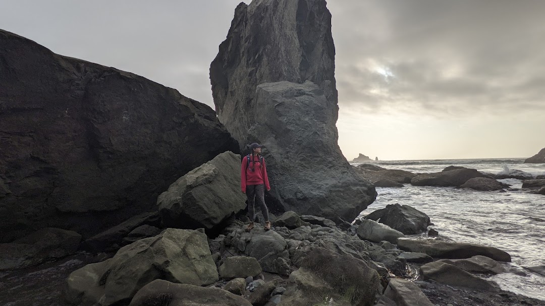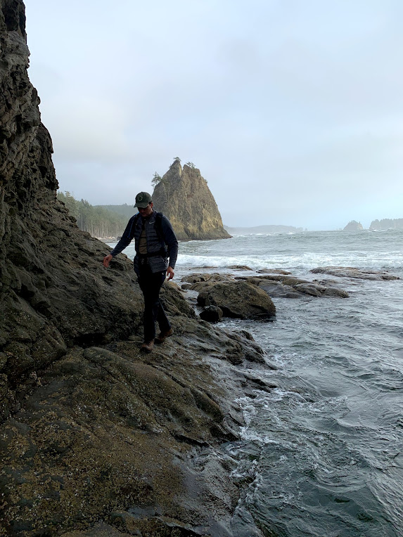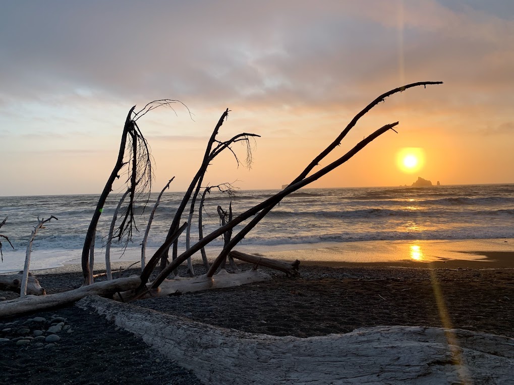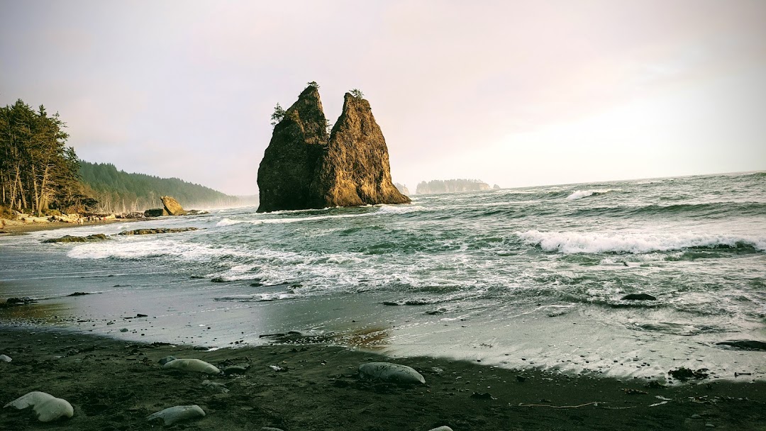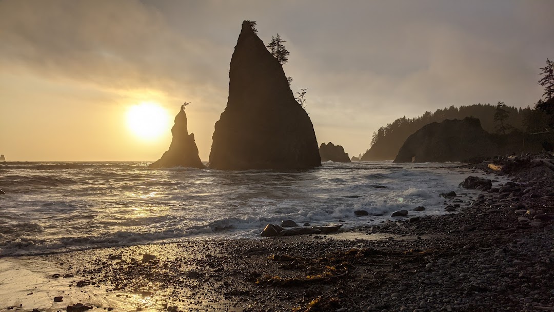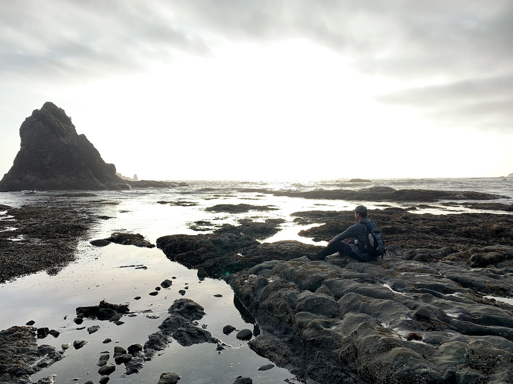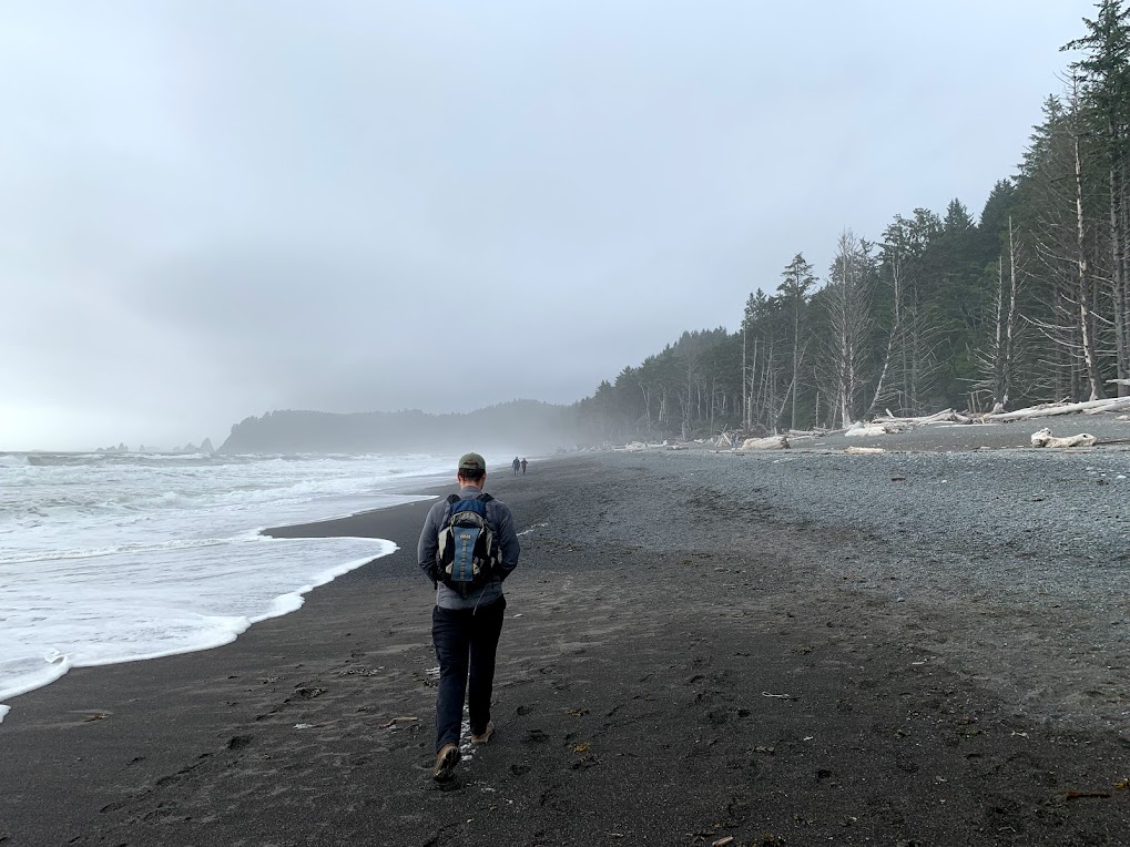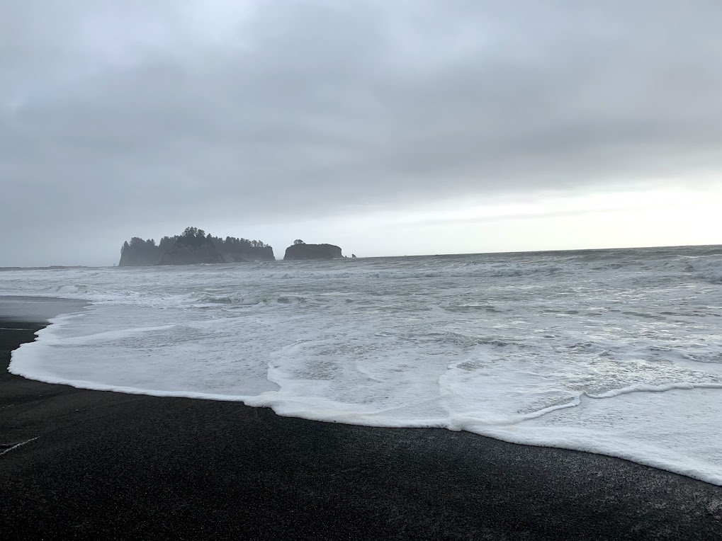 Next on the itinerary was a beach day! This was unlike any beach day I’d ever had before. We knew in mid August in Washington it wasn’t going to be like the sunny beaches of San Diego that we were used to. We dressed for the occasion and picked the Hole-in-the-Wall Trail from Rialto beach and if you are visiting Olympic this should be on your list. This was one of the best experiences. There is so much to explore and discover. We walked down the beach taking in the views of the fallen trees on the shore and the rock formations in the water. The hole in the wall was a blast to explore too. We crossed in front of the rocks chancing the waves on the way over, and went over the hill on land coming back. Both had spectacular views. The memory that will probably stay with me the longest though, is the sound of the waves retreating over the rocks all up and down the beach. The babbling is the most relaxing sound I’ve ever heard.