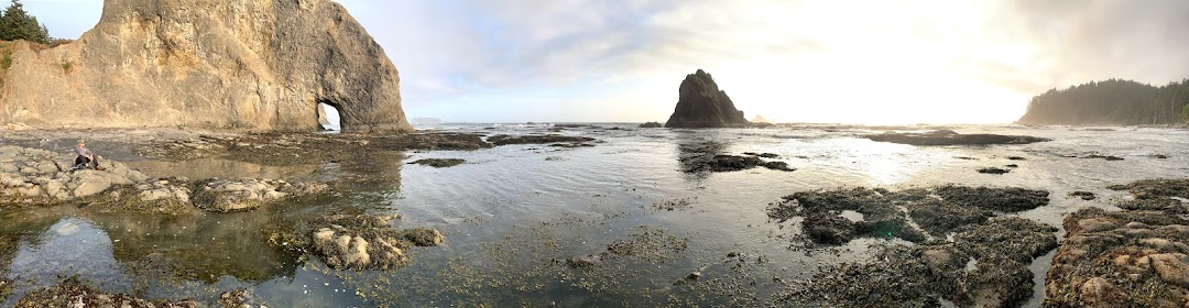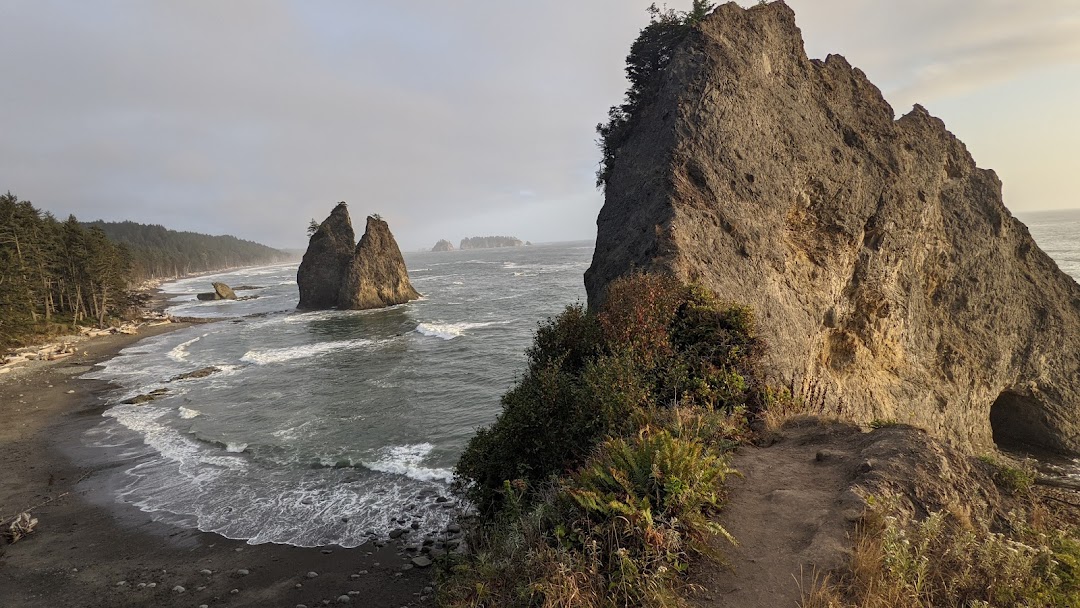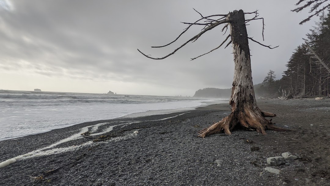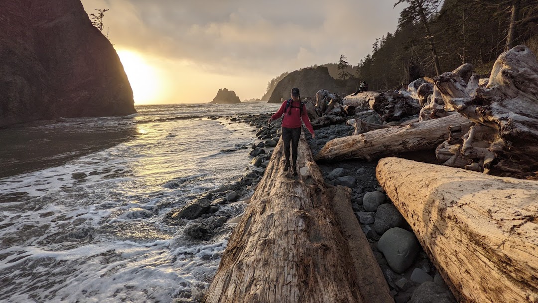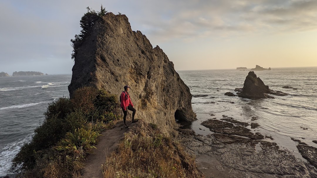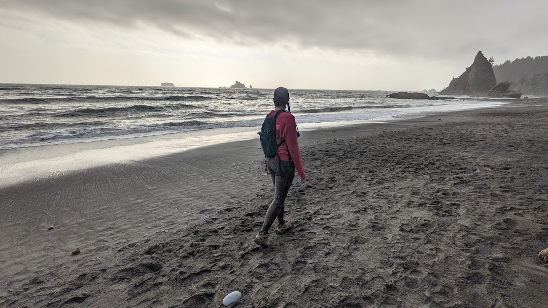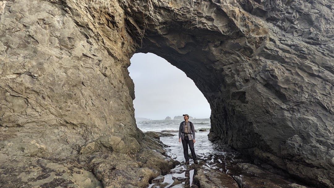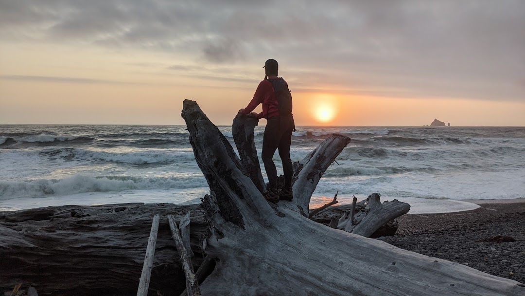 Next on the itinerary was a beach day! This was unlike any beach day I’d ever had before. We knew in mid August in Washington it wasn’t going to be like the sunny beaches of San Diego that we were used to. We dressed for the occasion and picked the Hole-in-the-Wall Trail from Rialto beach and if you are visiting Olympic this should be on your list. This was one of the best experiences. There is so much to explore and discover. We walked down the beach taking in the views of the fallen trees on the shore and the rock formations in the water. The hole in the wall was a blast to explore too. We crossed in front of the rocks chancing the waves on the way over, and went over the hill on land coming back. Both had spectacular views. The memory that will probably stay with me the longest though, is the sound of the waves retreating over the rocks all up and down the beach. The babbling is the most relaxing sound I’ve ever heard.